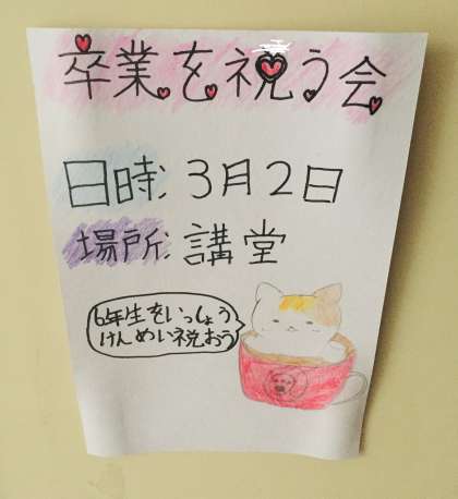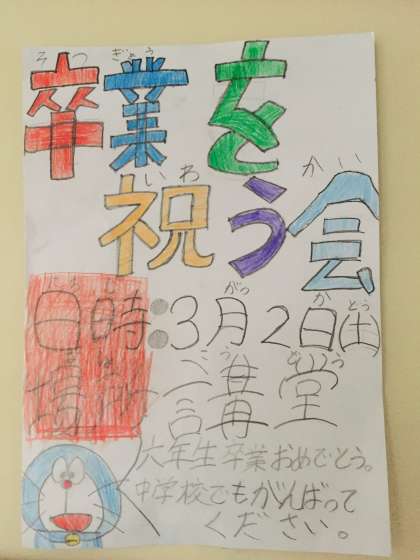 ポスターです。「卒業を祝う会」に向けて、準備をしています。