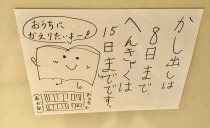 図書館から借りている本は、15日までに返却をしてください。