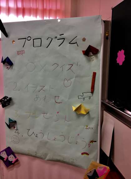 なかよし集会「卒業を祝う会」をしました。イラストカードを作って、イラストあわせをしました。