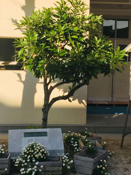 保健室前には、昭和49年度卒業生の記念樹があります。