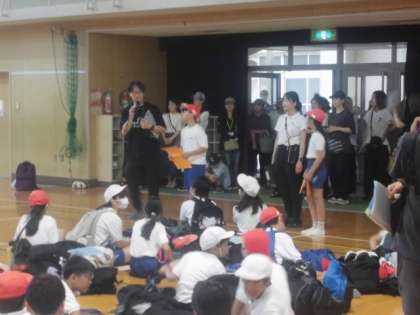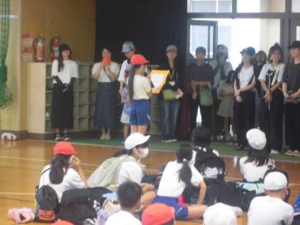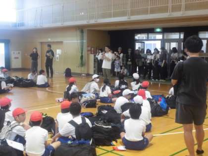 出発式を行いました。代表の児童から、早朝よりお見送りに来ていただいたたくさんの保護者の方にもお礼の言葉を伝えました。