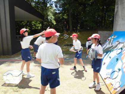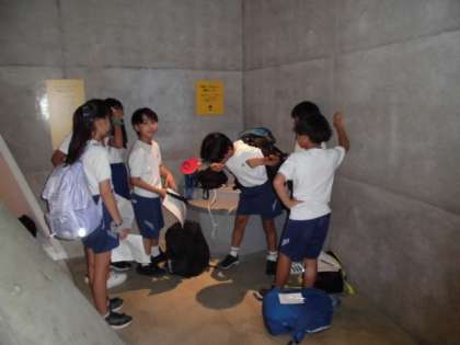 植村直己さんが実際にエベレストに担いで登った25キログラムのリュックサックを担いでみました。あまりの重さに驚いていました。