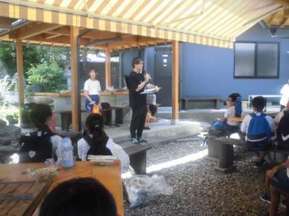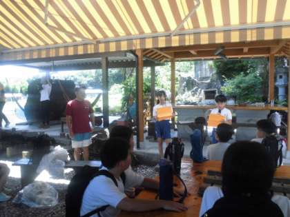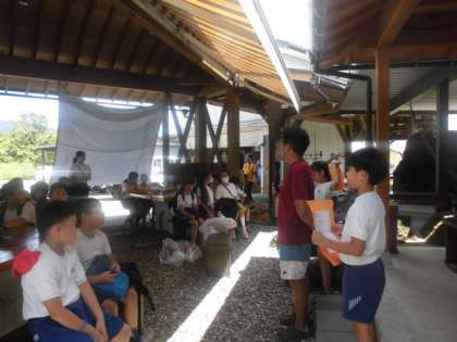 お昼ご飯を食べた後に、開舎式を行いました。「ときわ野」のご主人にみんなで心を込めて「よろしくお願いします」と伝えました。いよいよ楽しい活動が始まります。
