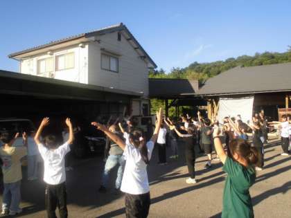 7月23日の朝、みんな元気に起床し、朝の集いに集まりました。少し眠たそうな子もいましたが、みんなでラジオ体操をしました。