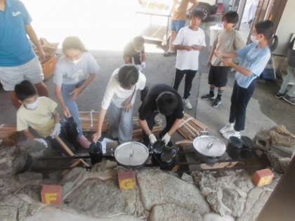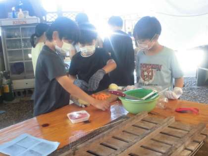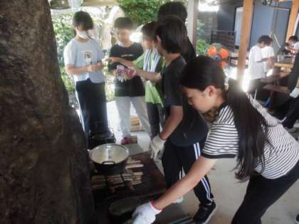 野菜を切るグループと牧出火をつけるグループに分かれてそれぞれがんばりました。