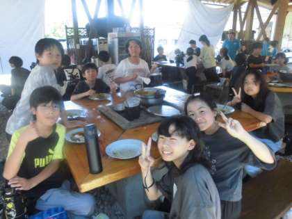 自分たちで作ったカレーにみんな満足して、とてもおいしいと言って食べていました。