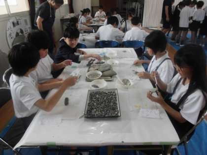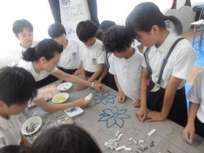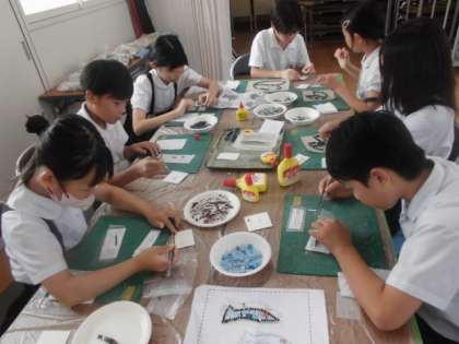 5年生が、モザイクアートに取り組みました。グループに分かれてそれぞれの役割ごとに活動しました。