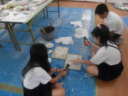 タイルを割ったり、二つ目のキャラクター「三東さくらちゃん」を作ったりでみんな大活躍でした。