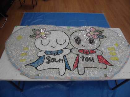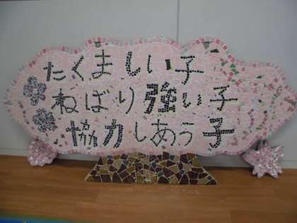 三東キャラクター「チームとワーク」と三東・学校教育目標の「さくらの木」