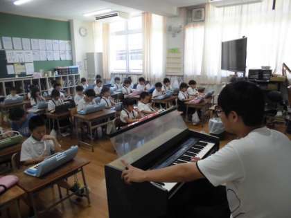 火曜日と木曜日の三東タイムは、ミュージックタイムを行っています。1年生は鍵盤ハーモニカをしていました。5年生はリコーダーでした。それぞれのクラスでコツコツとがんばっています。