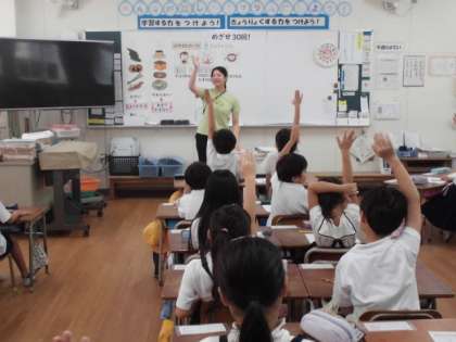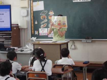 2年生が、栄養指導で「よくかんで食べること」について学習しました。紙芝居やプリント学習を通して、よくかんで食べることの大切さについてしっかりと考えました。
