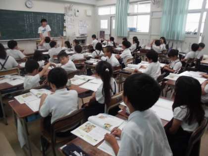 3年生が、道徳で「学級しょうかい」という教材について学習しました。放送委員会の各クラスの学級紹介のために、クラスみんなで大なわを練習して披露するというお話でした。クラスみんなでどのような行動ができるといいか考えました。一人一人がしっかりと意見を言うことができました。