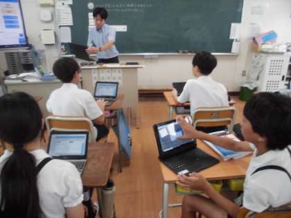 6年生が、算数で立体の体積の求め方について考えました。今まで学習してきたことをもとに立体の体積が、底面積×高さであることを見つけて四角柱や三角柱の体積の求め方を考えました。みんなノートとタブレットを使いこなしてしっかり考えていました。