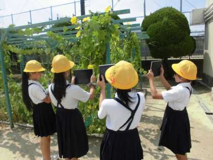 5年生が、理科でヘチマの観察をしました。今日は花のつくりについてしっかり観察していました。