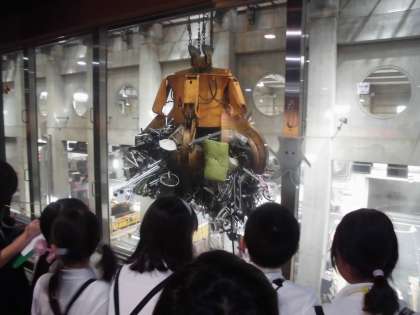 ごみピットからごみクレーンでごみを持ち上げて焼却炉の方へ運んでいました。粗大ごみのごみクレーンはとても大きくて迫力があり、みんなその場に、釘付けになっていました。