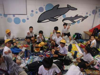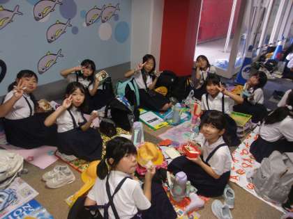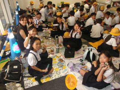 友達といっしょにお弁当を食べました。みんな笑顔で楽しく食べていました。