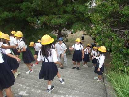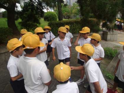 お弁当を食べた後は、日本で2番目に低いという天保山がある、天保山公園に行きました。みんなで楽しく遊びました。