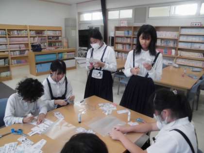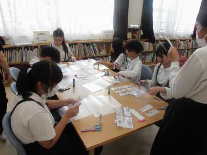 図書委員会は、150周年記念に読書週間やクイズラリーで配るしおり作りに取り組んでいます。とても素敵なしおりがたくさんできました。