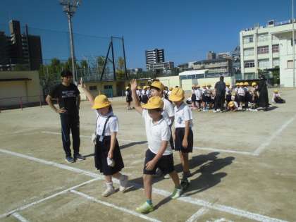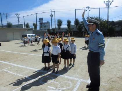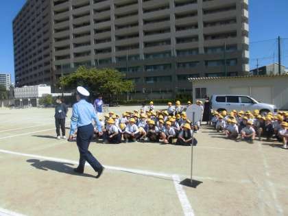 1,2年生が、大正警察の方をお迎えして交通安全教室で横断歩道の渡り方について学習しました。教えていただいたことをしっかり実践することができました。