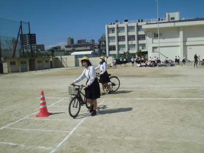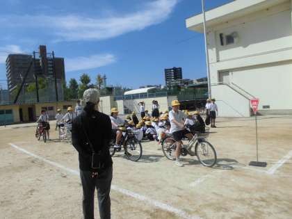 5,6年生も、自転車の正しい乗り方について学習しました。しっかりと理解して実践することができました。