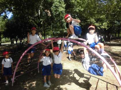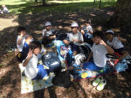 遊具で思う存分遊んだ後は、いよいよお待ちかねのお弁当です。11時を過ぎたぐらいからみんな「おなかがすいた」と言っていました。