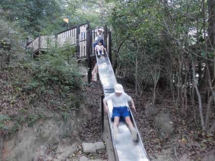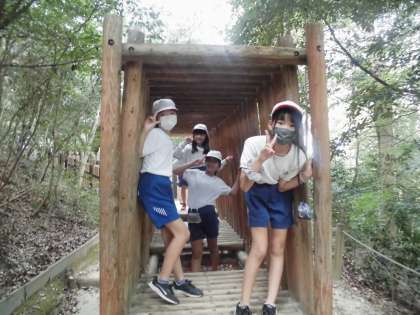 みんなアスレチックを思いっきり楽しみました。次はお楽しみのお弁当です。