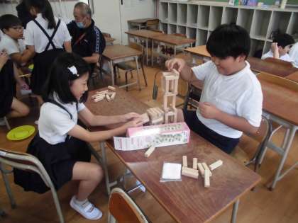 科学クラブでは、水を使わずにお湯を沸かす実験をしました。実際に地震などで避難した時に役に立ちます。ゲームクラブでは、昔遊びもしました。みんなとても楽しんでいました。