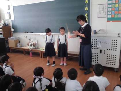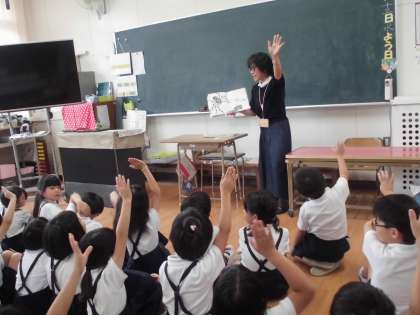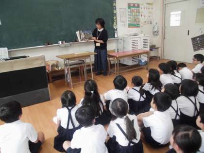 1年生が、読み聞かせをしてもらいました。みんなお話の世界に引き込まれて、とても集中して聞いていました。