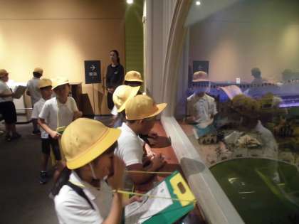 今昔館では、まず昔の町の様子を見学しました。隠されている昆虫などを友だちと一緒に探しながら楽しく見学しました。