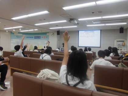 5年生が、社会見学で読売新聞に行きました。1組と2組に分かれて見学をしました。初めにスライドや動画で説明がありました。みんなメモを取りながらしっかり聞いていました。