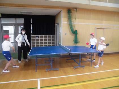 室内ゲームは、卓球やバスケットボール、ドッジボールなどそれぞれにグループになって楽しんでいました。屋外ゲームもサッカーとキックベースに分かれて盛り上がっていました。