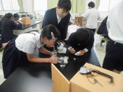 6年生が、火山灰を双眼実体顕微鏡で観察しました。みんなで協力して、火山灰の粒をしっかり見ることができました。