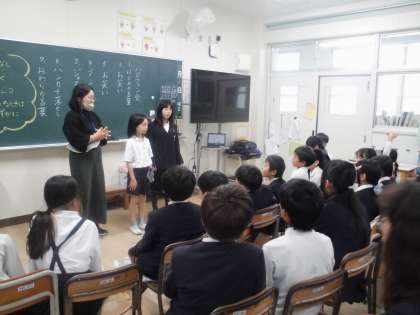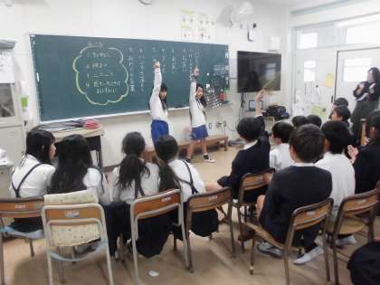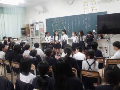 4年生が学級活動でハロウィン会をしました。お菓子をもらいに行くお笑いの劇やダンスなどの出し物でとても盛り上がっていました。