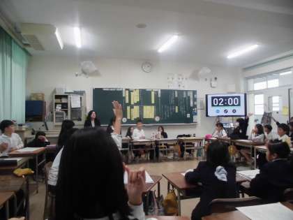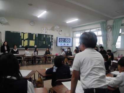 4年生が、学級活動で自分たちの生活をアンケートで振り返り、改善点などを考えながら、学級目標が達成していけるように「今週の目標」についてみんなで考えました。今週の目標を決めてみんなで取り組み振り返ることを繰り返していくことで学級目標の達成を目指します。学級会ではしっかりと理由をつけた意見を発表する場面が多くみられ、1か月分の今週の目標をしっかり決めることができました。