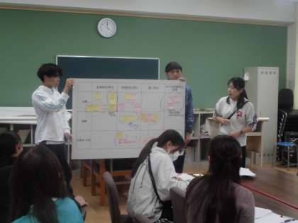 4年生の学級活動の授業をもとに、研究討議会を行いました。小グループで話し合い、今日の授業について成果や課題について出し合い共有しました。講師の先生にも来ていただき参考になる助言をたくさんしていただきました。