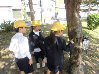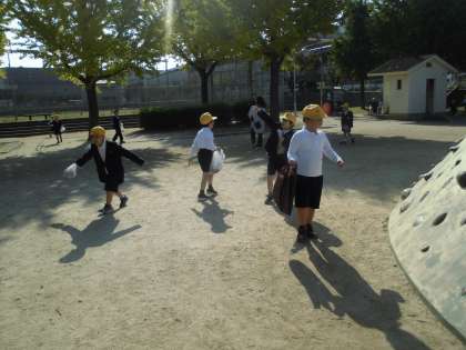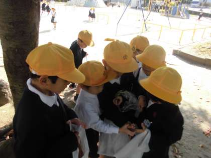 1年生が、三軒家公園に「あきみつけ」に行きました。落ち葉やどんぐりなどをたくさん拾いました。木の樹液やセミの抜け殻なども見つけていました。友だちと協力して楽しく活動していました。