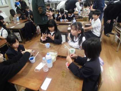 2年生は、生活科でスライム作りを行いました。みんな楽しく活動しました。