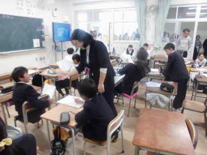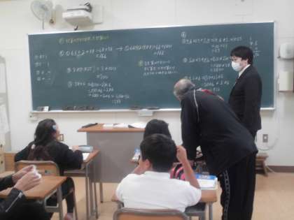 4年生は、算数の習熟度別学習で「式と計算」の学習に取り組みました。それぞれのクラスごとに、計算のきまりを使って計算をしました。交流して友だちと一緒に学び合う場面も見られました。