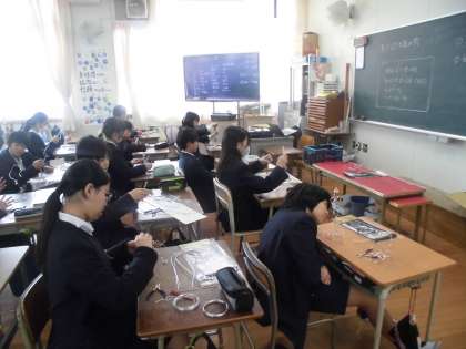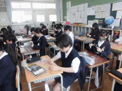 5年生が、はりがねを使って街づくりをしています。建物や木、電灯などそれぞれにイメージを膨らませて作っています。とても楽しいようで、みんなすごい集中力でした。