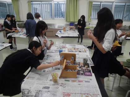 11月13日 モザイクアート「下駄箱学年表示板のかざりつけ」