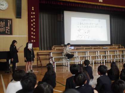 1月17日 児童朝会「図書委員会の発表」