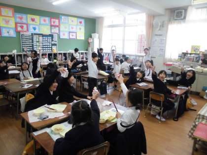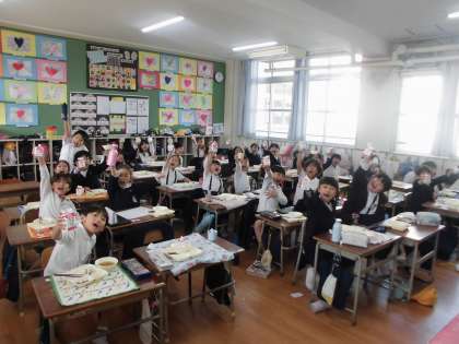 三軒家東小学校の150歳を祝ってみんなで乾杯をしました。