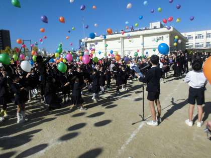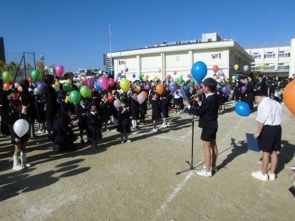 三東の歌の後は、運動場に行って風船を飛ばしました。天気も良くそらもきれいでとても素晴らしい思い出となりました。