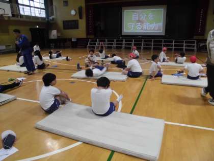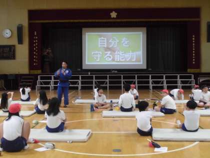 大正東中学校の先生に来ていただき、柔道の学習をしました。受け身の仕方を教わり実際にやってみました。その後、お互いで見合い評価をし合いました。