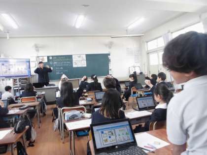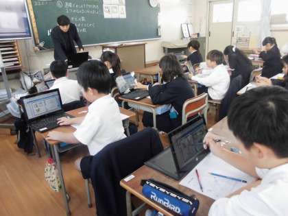 2年生が算数で、三角形と四角形の学習をしました。スカイメニューの発表ノートを使って、図形の仲間分けを行い三角形と四角形の特徴について考えました。自分で考えた後、グループで意見を出し合い、さらに電子黒板でみんなで確認しながら学習することができました。