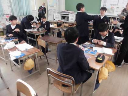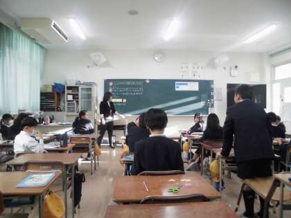 4年生が、算数で分数の学習をしました。1より大きい分数の表し方について紙テープを使って考えました。グループでの話合いを行い最後にみんなでまとめました。