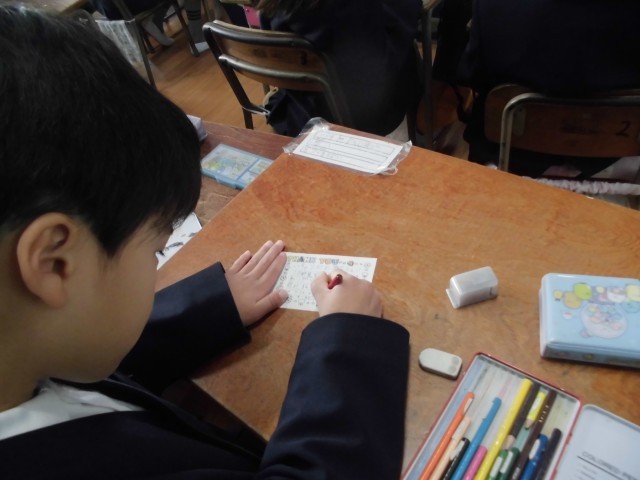 2年生が、生活科で町たんけんへ行ってお世話になった方への手紙を書きました。一人一人が心を込めて丁寧に書いていました。