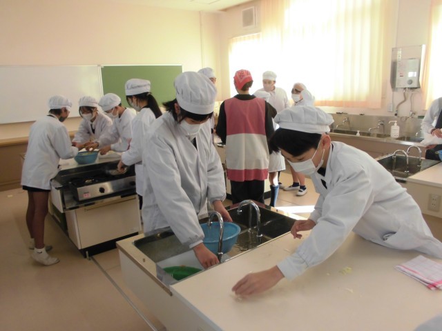 12月18日 6年生 家庭科・調理実習「野菜炒め」