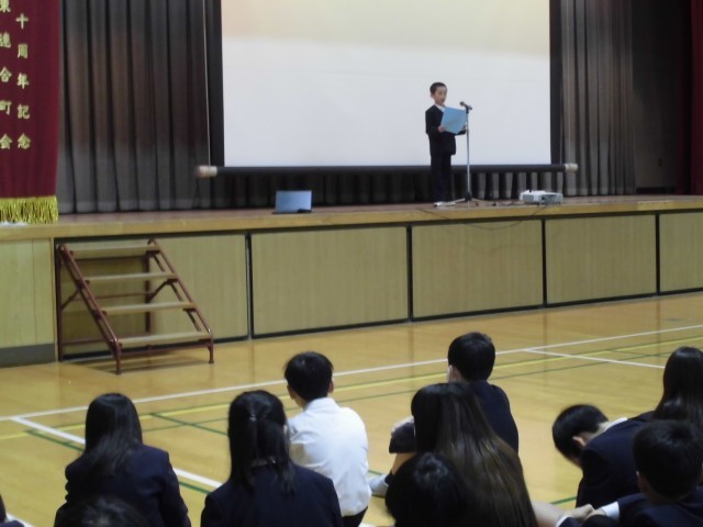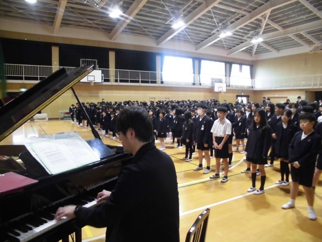 3学期の始業式をしました。大阪市歌を歌った後、1年生の代表の児童から3学期にがんばりたいことの発表がありました。縄跳びや漢字検定の満点などをめざしたいと目標を言っていました。学校長の話では、目標持つことや言葉遣いについてお話をしました。みんなしっかり話を聞いていました。