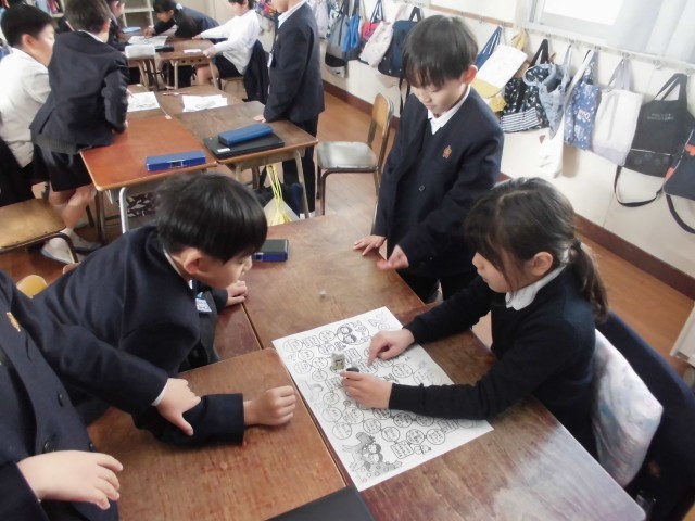 2年生が学級活動で「すごろく」をしました。楽しいすごろくでとても盛り上がりました。